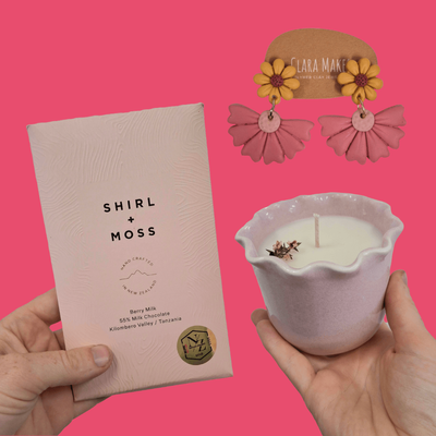 Add on a beautiful gift - Shirl and Moss Chocolate / Kanuka Candle / Earrings by Clara Makes